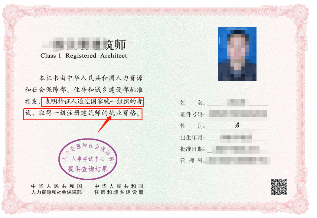 原版表述 :“表明持证人通过国家统一组织的考试,取得注册建筑师执业资格证”