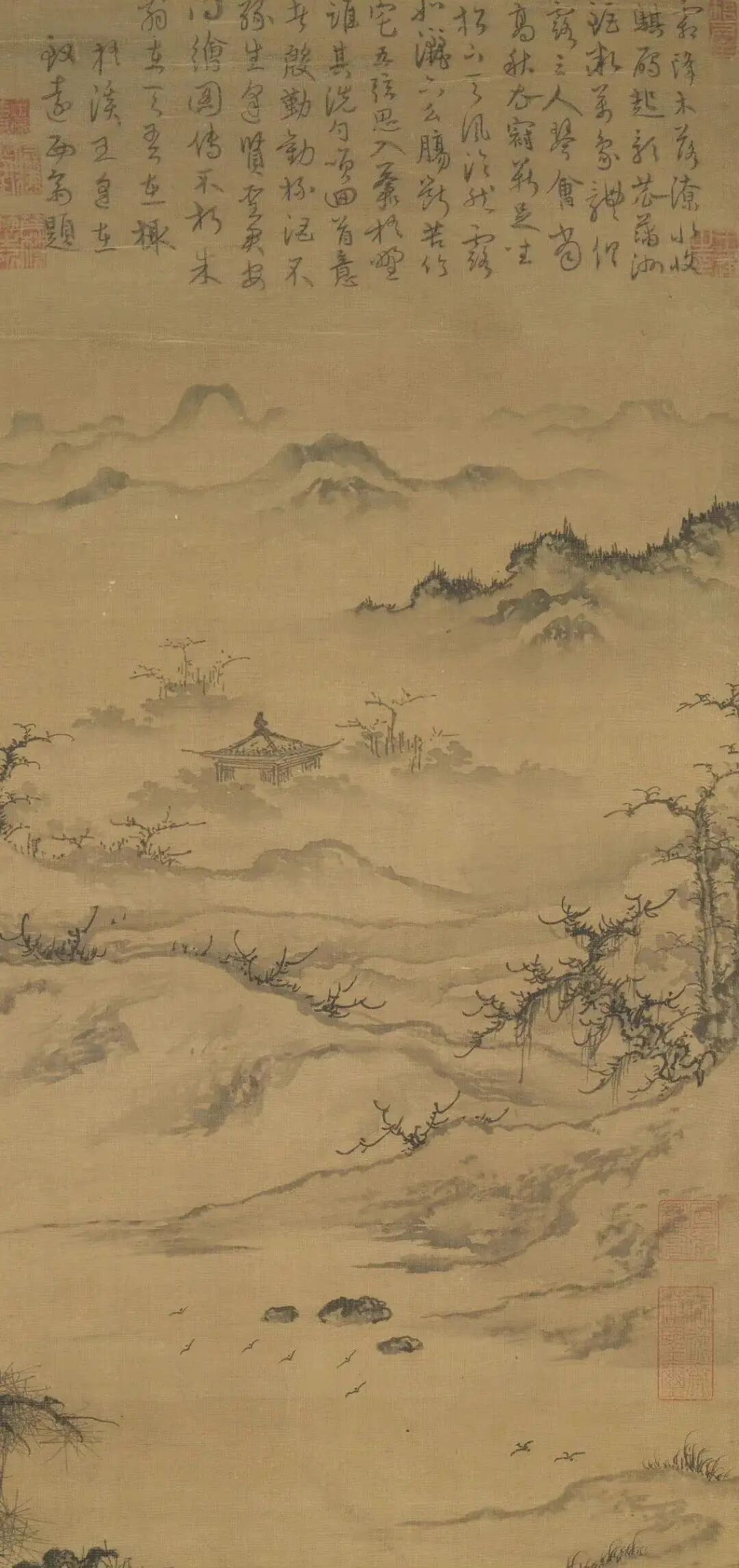 朱德润,字泽民,活动于吴郡一带,曾因赵孟的推荐而担任翰林应奉,有《存复斋集》传世,和吴地的柯九思、张雨等书画家也往来密切。他长于书画,书体近于赵孟頫,画风则远追十至十一世纪的李成、郭熙、许道宁。