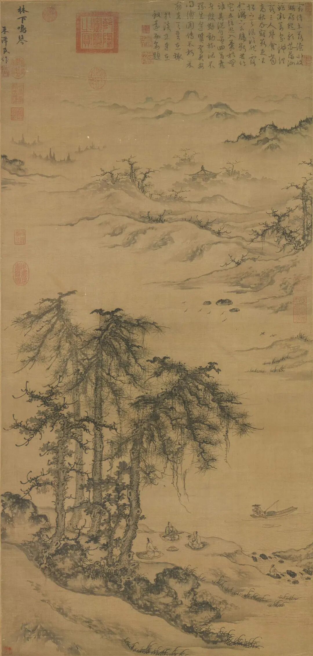 朱德润 元《林下鸣琴图》,纵121厘米,横58厘米,绢本设色,台北故宫博物院。