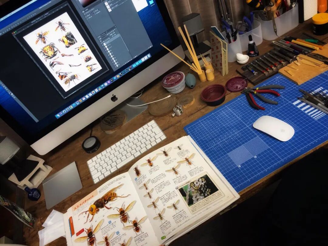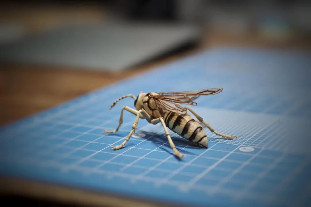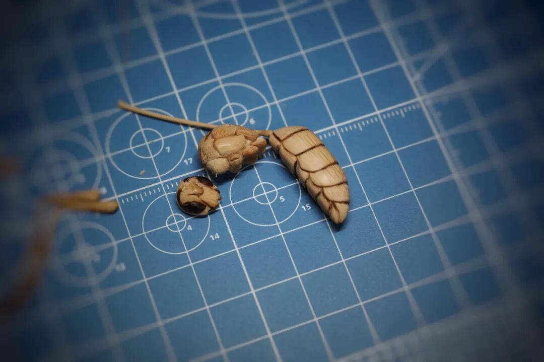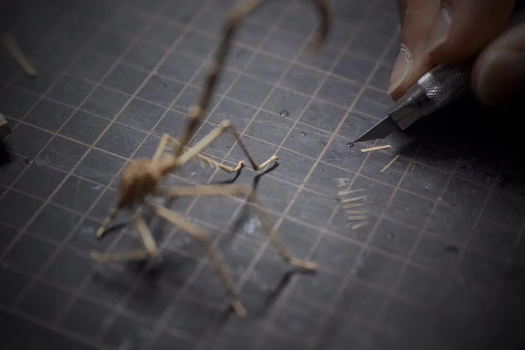 所有的制作并不是依靠数字来制作,而是通过一位艺术家的观察、想象和经验去完成,这就是艺术家和工匠的区别点之一。因为人眼具有局限性,所以在制作的时候,这位艺术家会刻意精简没有必要的细节部分,将这些精简的元素留出空间,给到更值得强调的部分,可以说,这位艺术家用竹子制作的昆虫雕塑作品,比真的昆虫还要给人视觉上带来真实的感觉。