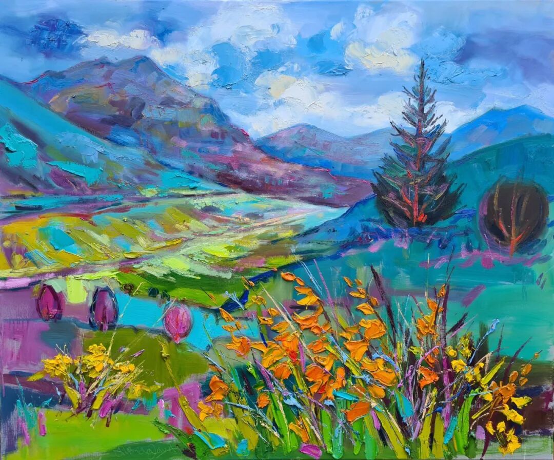 朱迪思非常注重苏格兰色彩主义传统的绘画。她的艺术作品大胆、生机勃勃和充满活力的欢乐风景。