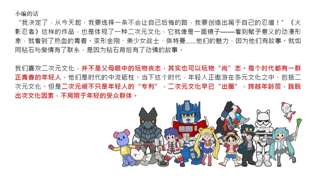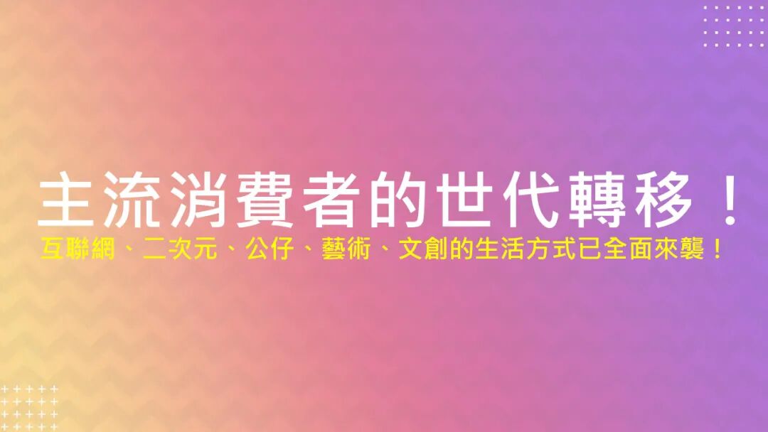 现在的主流消费者已经开始转移了,开始往互联网、二次元、潮设计、公仔、潮流艺术、文创等运动,这些关键字互相牵扯在一起。