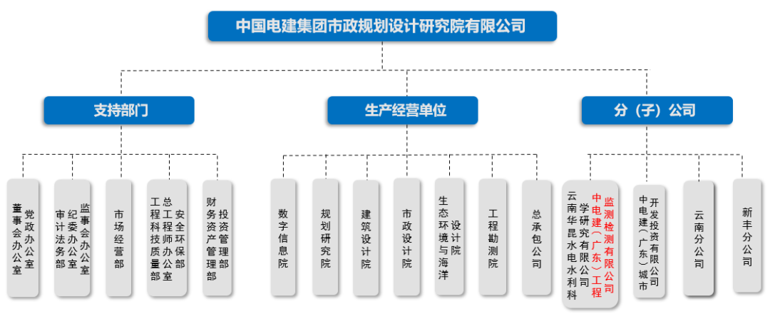 为贯彻双总部运营模式,匹配市政院业务开展,也对市政院的组织进行了调整,图7是市政院机构设置,共设置7个生产经营单位、5个支持部门、4个分(子)公司,很好的支撑了市政院业务定位。