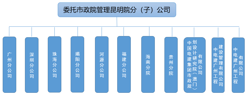 在优化区域化管理方面,实现属地化管理,市政院管理着昆明院在广东、澳门、海南、福建、广西、贵州6个省区的11个分(子)公司(图8)。