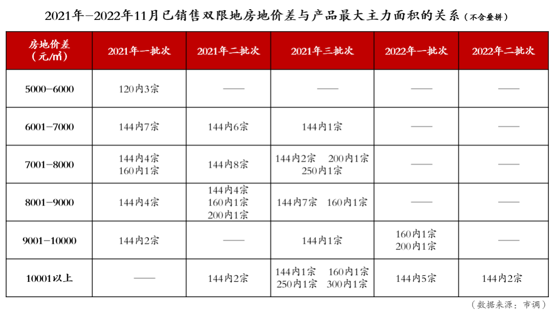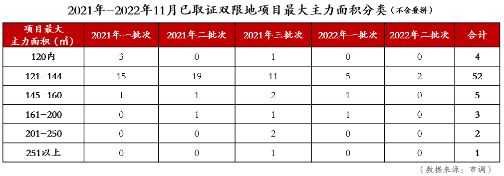 因此,从趋势上看,土地批次越靠后、越晚入市的双限地,产品主力面积上探可能性越大。