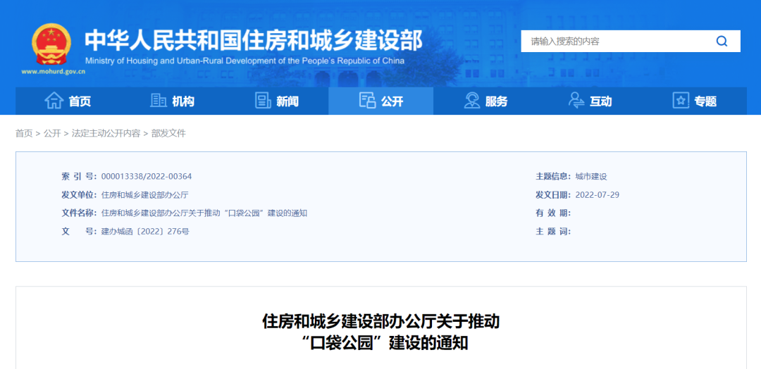 /住建部:2022年全国建设不少于1000个城市“口袋公园”
