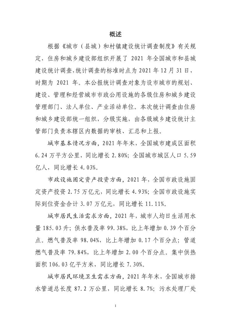 近日,住房和城乡建设部发布《2021年中国城市建设状况公报》(以下简称《公报》)。