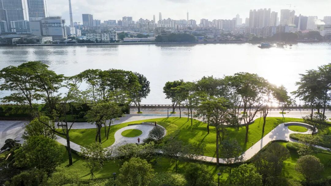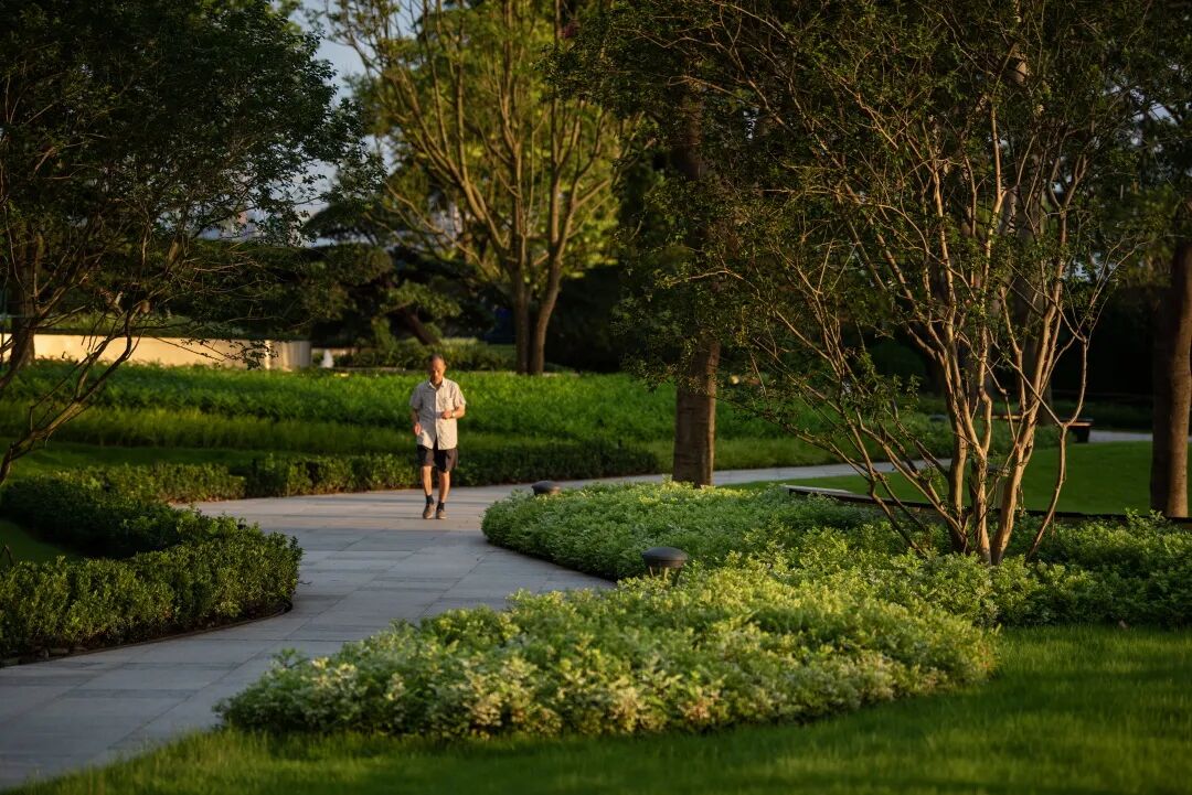 我们将“健康福祉环境、国际社区氛围、禅意生活方式”作为设计原则,沿江,规划了社区独享的滨江公园,绿色的草坡随着江面幅度起伏如同一个个小山丘,增添场地的体验感。