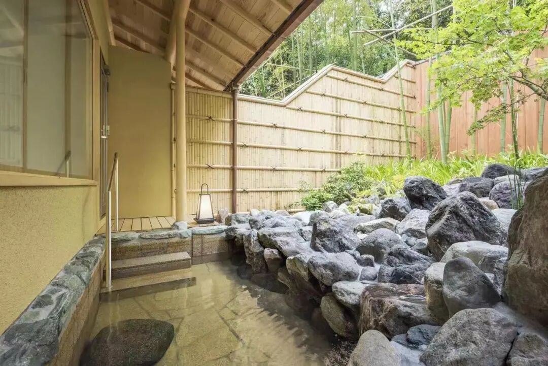 时光仿佛对这里格外优渥,如今的酒店里,亦可举目眺到不远处的寺庙,明治时期的建筑风格与枯山水景,月色下享用温泉浴,更能春赏粉樱秋览红枫。