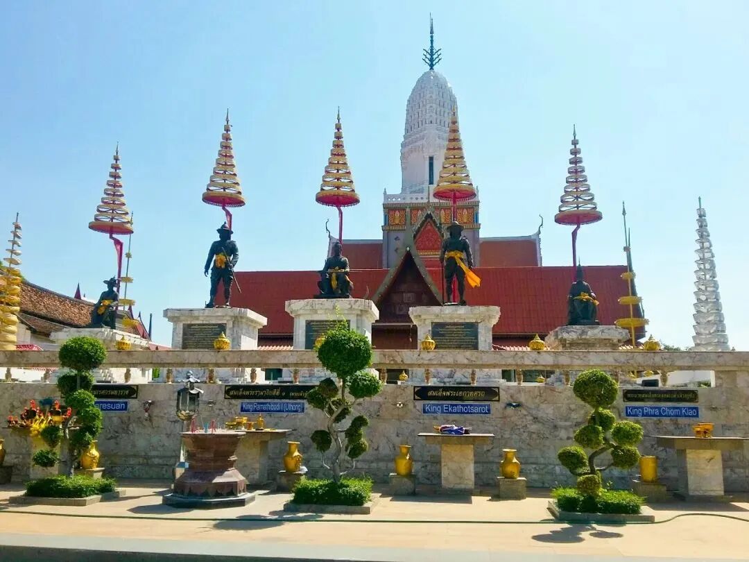 1353年,沙旺寺由大城府的Ramathibodi一世国王 (乌通王)下令建造,虽然年代久远偶有损毁修复,但大佛塔、圣殿等一众古迹留存至今,寺庙的标志是五座一字排开的国王铜像。