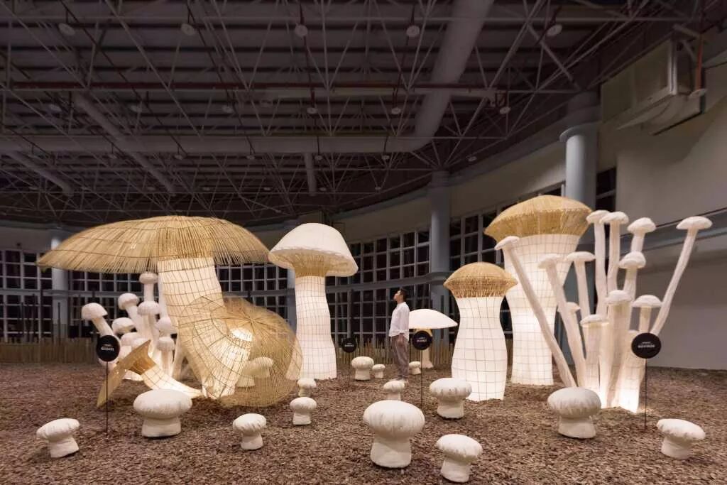 范承宗 – 考工記工作室:从日治时代引进种植技术的段木香菇,到五十年代因出口导向而盛行种植的洋菇——台湾的蕈菇产业除了拥有丰富的栽培历史,随著太空包与木屑瓶的发明、不断精进的菌种研究技术,菇农们种出了一片多元又美丽的蕈菇风景。一朵香菇的热量等于几碗白饭?在台湾的哪个县市出产最多的杏鲍菇呢?艺术家范承宗以竹编工艺织就一片百菇森林,每一朵蕈菇都拥有一组蕈菇密码。快一起走进森林裡,揭开蕈菇们的神秘面纱吧!