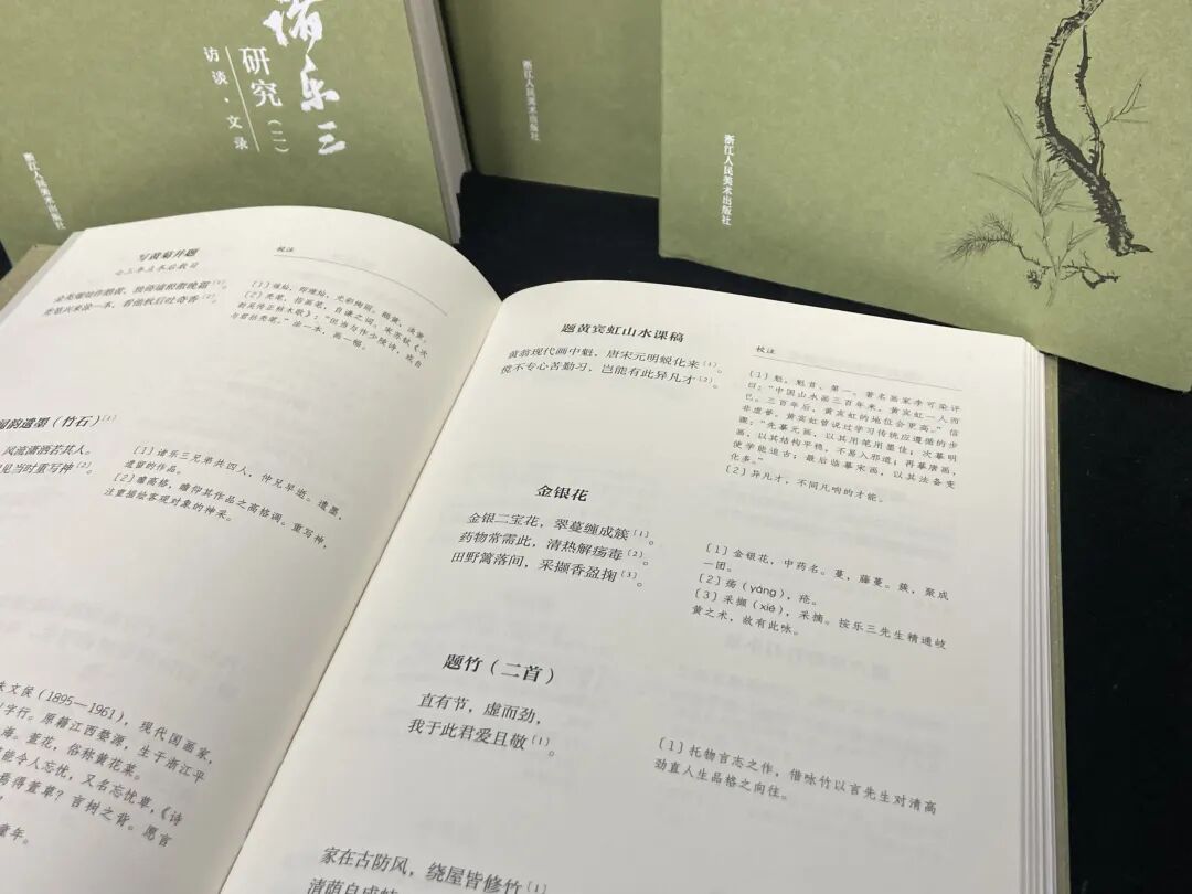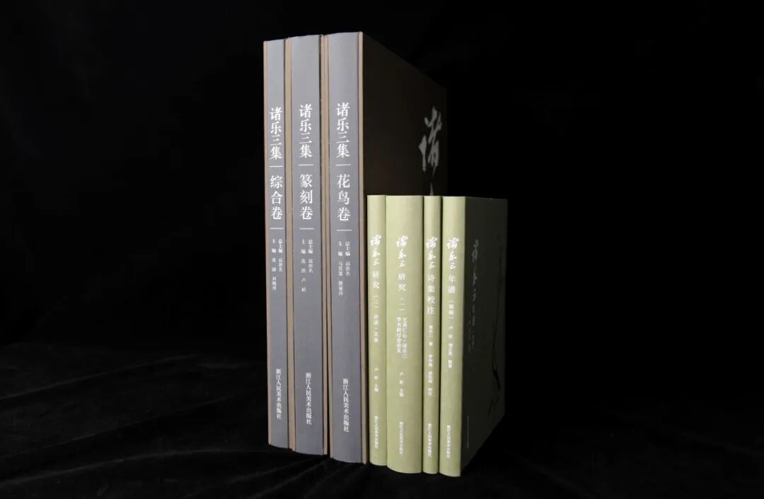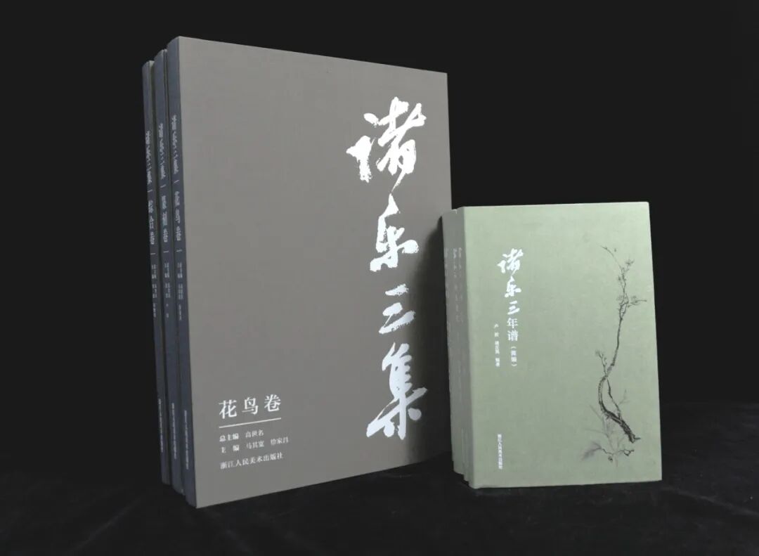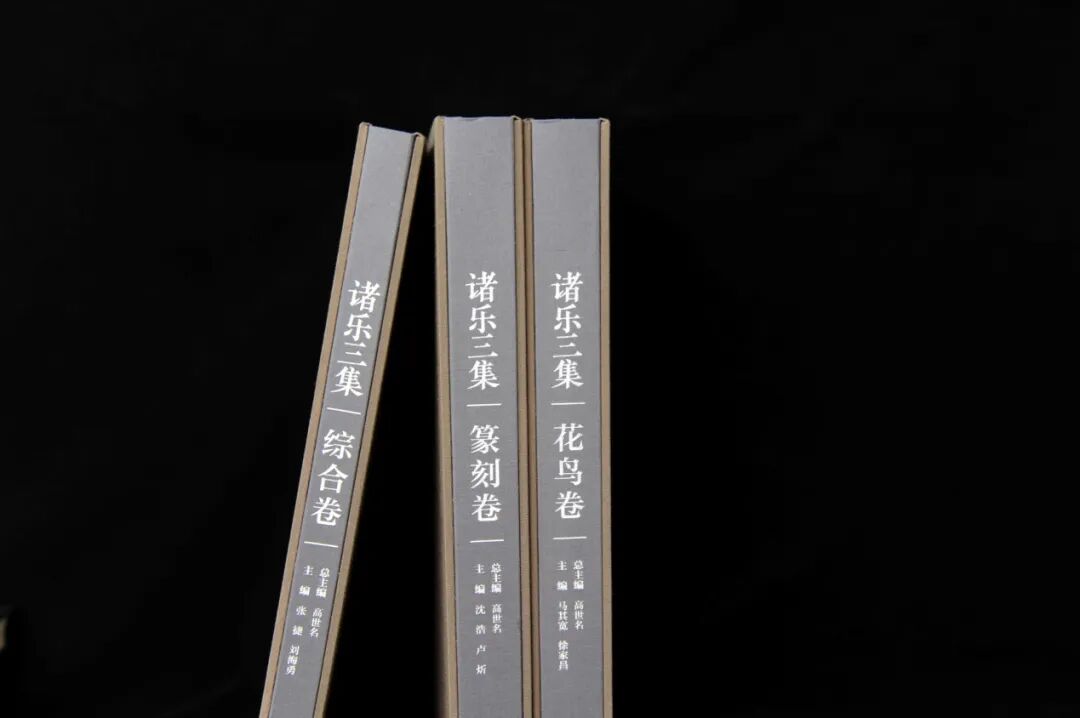 《诸乐三集》系列书籍由中国美术学院院长高世名主编,包括《诸乐三集·花鸟卷》《诸乐三集·篆刻卷》《诸乐三集·综合卷》。四本研究文集包括《诸乐三年谱(简编)》《诸乐三诗集校注》《诸乐三研究(一)》《诸乐三研究(二)》,内容宏富,搜罗广博,涵盖了诸乐三先生在诗、书、画、印方面的艺术成就,囊括大量未曾出版过的书画、篆刻作品,教学教案,医学手稿,以及多年来围绕先生的研究全貌,是一部将诸乐三先生的成就做全面性总结的合集,也是迄今为止对诸乐三先生创作、文献与研究最为全面的整理与出版。