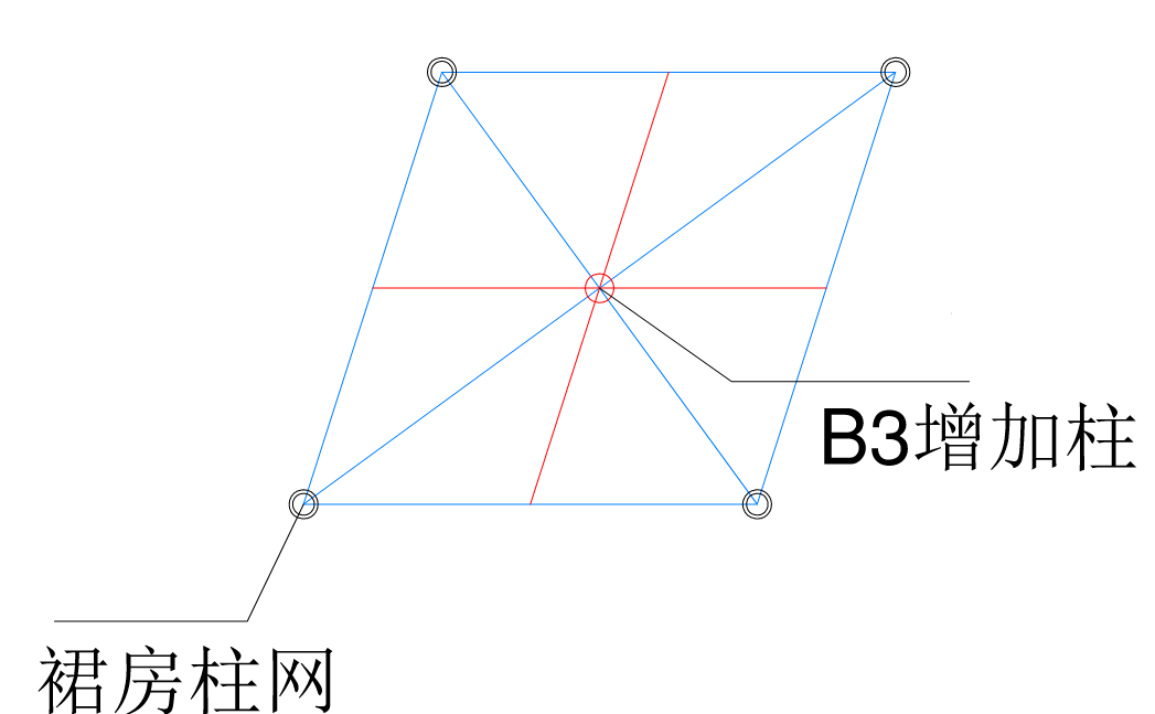 由于项目地下1层为枢纽客车车道,上部枢纽结构部分柱位无法落地。我们对首层转换框架进行了性能化设计,保证其结构安全可靠。