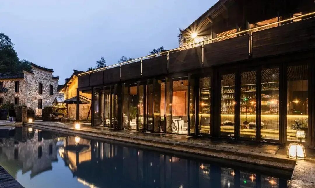 保留老建筑,一层加盖透明玻璃盒子,设计露台空间,宅前加建游泳池,作为民宿的大型共空间。