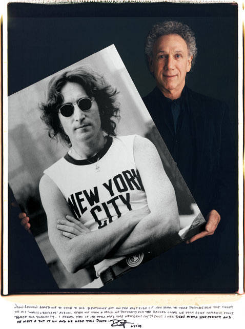 Bob Gruen:约翰·列侬让我去他在纽约东部的公寓,去为他的专辑《Walls and Bridges》拍摄封面。拍了一些官方图之后,我问他是否还保存着我一年前送他的那件纽约衬衫,他听后把衣服找了出来。于是便有了这张作品。