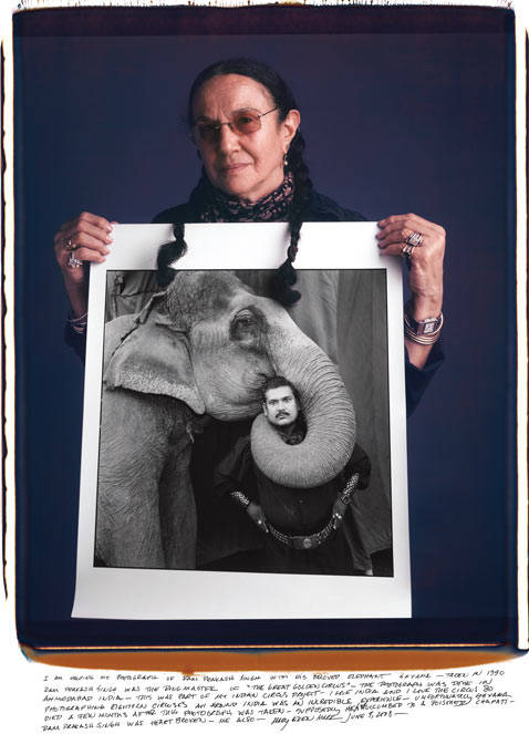 Mary Ellen Mark:我拿着的照片是Ram Prakash Singh和他心爱的大象Shyama。Ram是印度The Great Golden Circus的马戏团表演指导者。可惜的是Shyama在几个月后被人用面包引诱毒杀,而Ram Prakash Singh伤透了心。