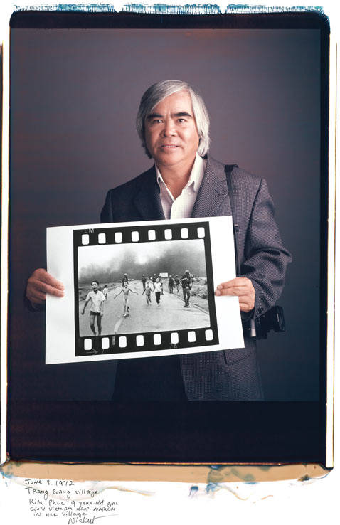 Nick Ut:Kim Phuc,一名在越战期间只有9岁的女孩,浑身赤裸着。图中展示的是南越南向她的村庄投放凝固汽油弹后的景象。现在我和她依旧保持着联系。