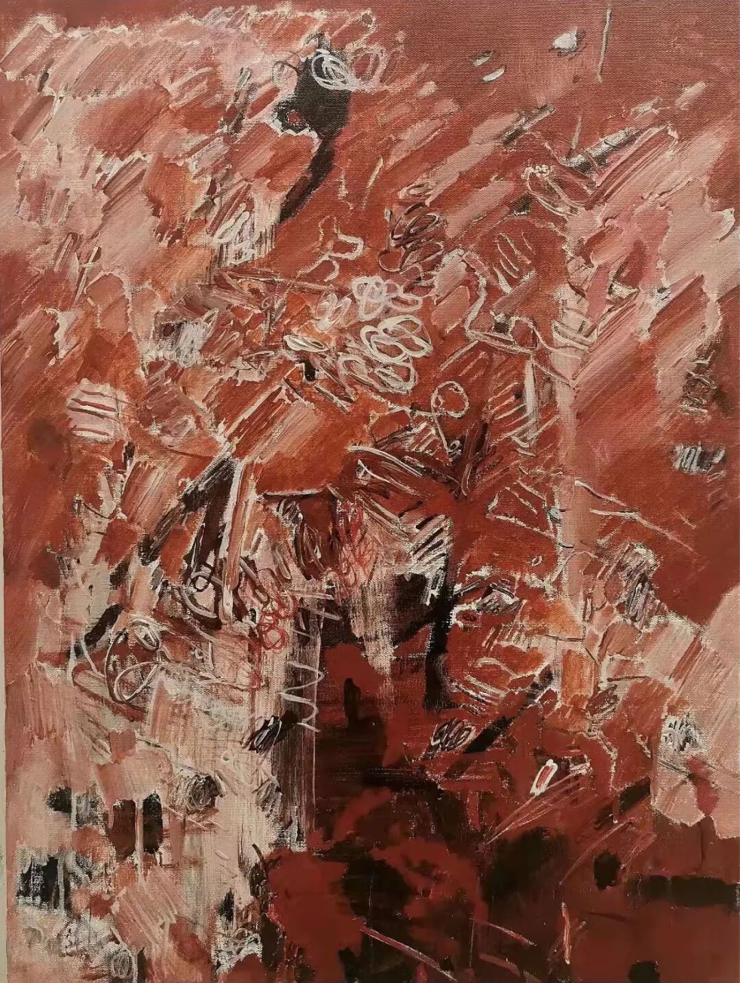 “抽象性绘画创作与理论性探究对于朱明弢个人而言,恰是一种观察社会与受众日常艺术审美时如何做选择的学问。在画面生成的取舍中,在展览实践的评判下,以及主流价值与主题大观的时代语境中,朱明弢在长期的抽象性节奏上有着强烈的内控意识,他一直与自己也与身边的艺术人群进行着执着的博弈,他试图在抽象表现方法与抽象形成的理念上进行着有力的表现,这种个人化的博弈在抽象性语言的发酵与醇化中有着涉险而在的精神独白,并以此重建自我的能效感。作为抽象艺术的思考者和探索者,他将如何从画面形式或理论阐释上概括自己,并且将如何解决受之影响的年轻一代抽象语言实践者的方向选择与精神偏好是艺术发展的未来,这是他当前的心思与后续的沉淀。抽象艺术从哪里开启到哪里休止几乎并不重要,因为它一直存在着!”