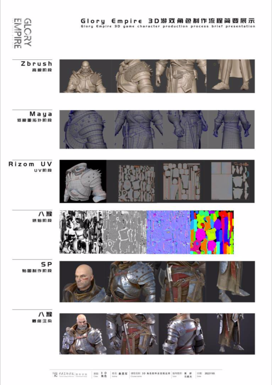在游戏角色制作的学习中我们以经典案例的分析摹写导入,使学生掌握游戏全流程的工作方法,在此基础之上通过对跨专业知识与设计实践相结合,启蒙学生在感知与认知方向,造型与结构、审美判断、功能与价值、观念与概念、产品与品质等广义设计学的内涵与外延,鼓励学生提出具有普遍意义和创新价值的设计问题,持续激活学生学习设计的志趣和探寻设计未来的理想。