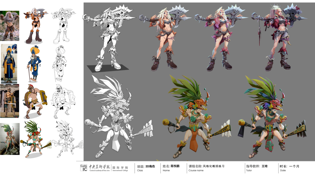 我们的游戏角色设计课程是在产品开发的假定性基础上进行的,通过历史文化、艺术人文和视觉艺术等丰富多彩的知识系统的引导和启发,结合设计理论框架与IP典故的要领感知,激发学生在创造性地领悟角色功能、性格和叙事需要等方面构建概念逻辑。借由对世界观的持续推敲,培育学生的设计觉知力、艺术鉴赏力、艺术表达力、以及综合创造力等结构性能力体系。