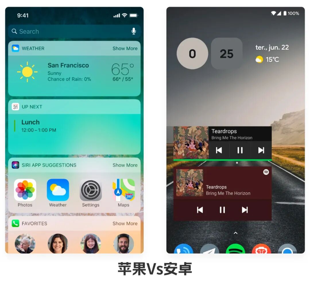 对于安卓来说,因为一开始就支持对小组件的高定制化程度,所以在支持了锁屏、消息中心、控制中心、搜索等几个场景下的迭代后,android 12并没有在提效这个方向给到我什么惊喜。唯一值得一提的是相对上一个版本的material design,material3明显对小组件的设计做出了更多在颜色、功能、交互形式上的引导(还谈不上限制)[4]。