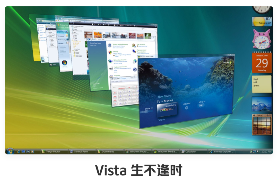 为什么要去掉呢?微软自己的说法是为了“提升向下兼容性、提升桌面的整体性、降低视觉杂音”。从这里其实可以看出早期windows和苹果的设计理念差异还是挺大的,当时苹果考虑的是如何将花里胡哨的小组件与桌面任务区隔开,而微软则在想办法让不同形式的信息融合在一起。