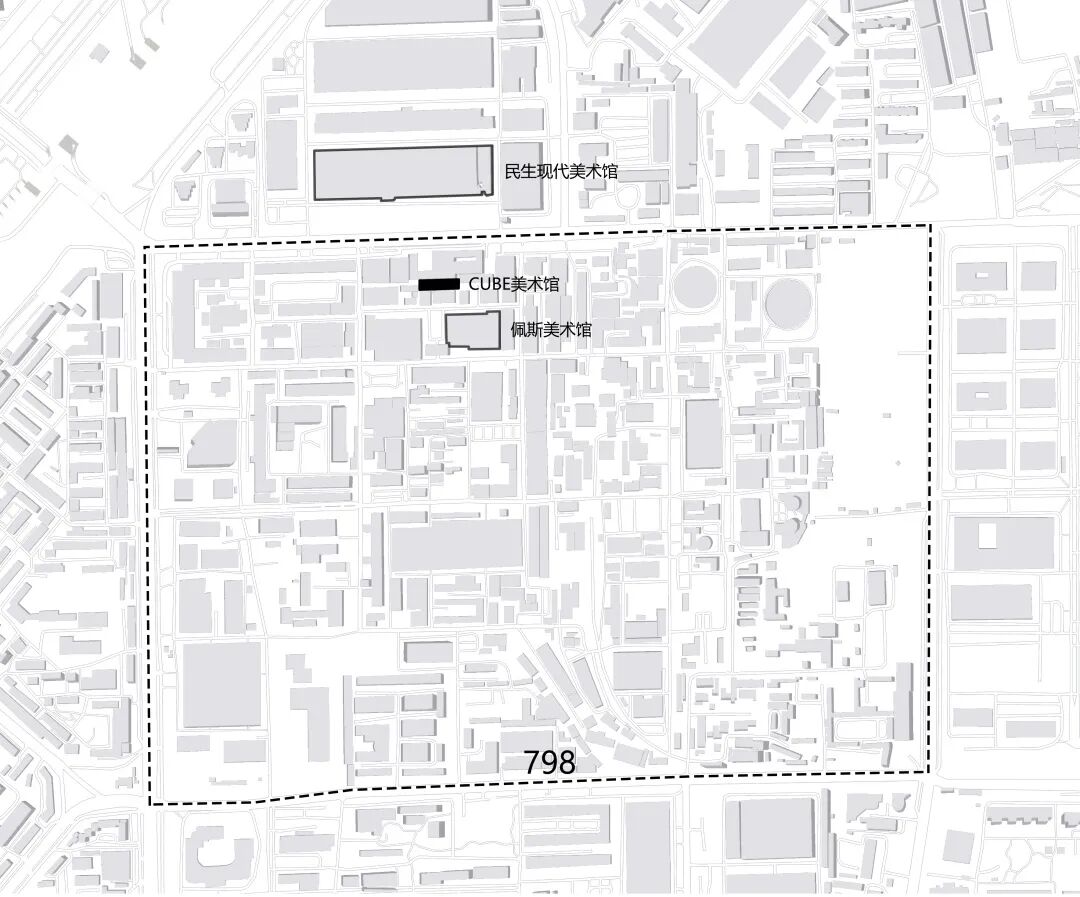 CUBE Art Museum, a renovation project, is located inside 798 art district adjacent to Pace Art Museum and Minsheng Museum of Modern Art, both were also designed by Zhu Pei in 2009 and 2016 separately.