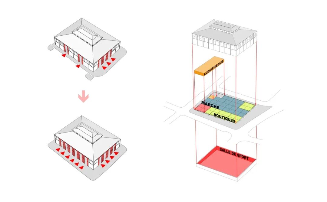 这座1868年以维克多·巴尔塔德 (Victor Baltard) 的风格建造为农产品市场,经过长时间的废弃后,建筑师帕特里克·莫格将秘密屋顶市场恢复到原来的功能,目前开放的食品市场将中心功能带回了第19区的生活。