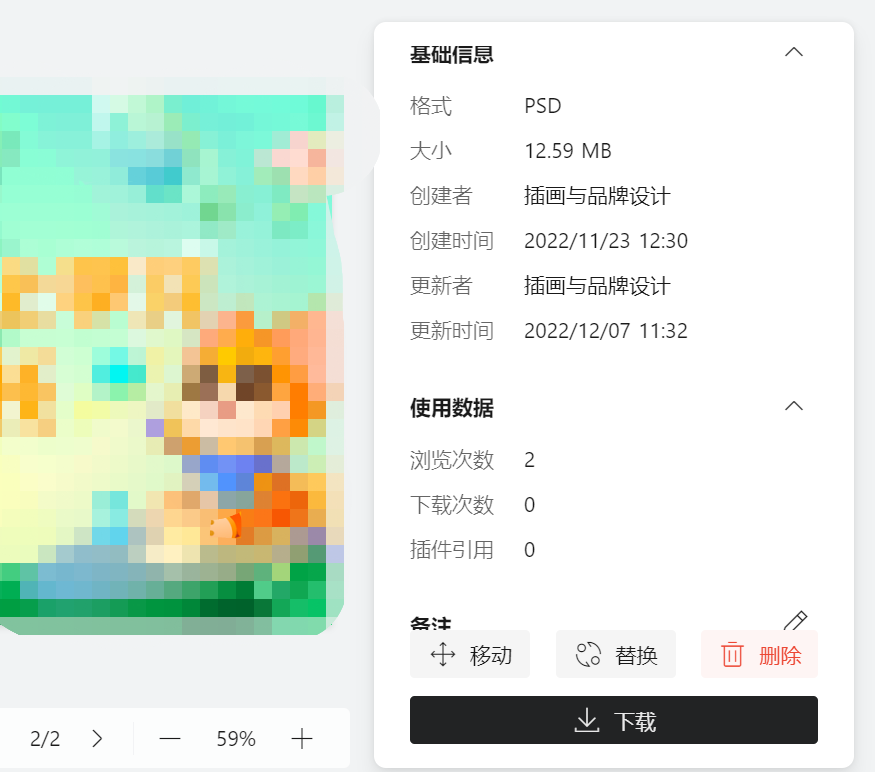 如果你也面临着和“壮哥”相似的风险,无论是个人设计师还是工作室,都可以试试CoDesign素材库。素材详情页详细展示的格式、大小、帧率、创建者、创建时间、更新时间等信息,给你一个完整的原创版权凭证。