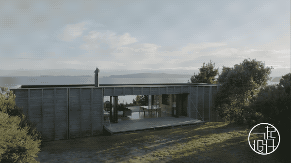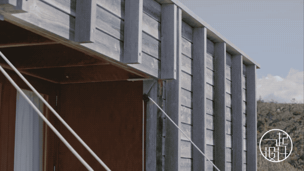 COROMANDEL BACH 有着独特的外墙设计,通过可以上下拉动的绞盘设计,让屋子的立面可以开合。