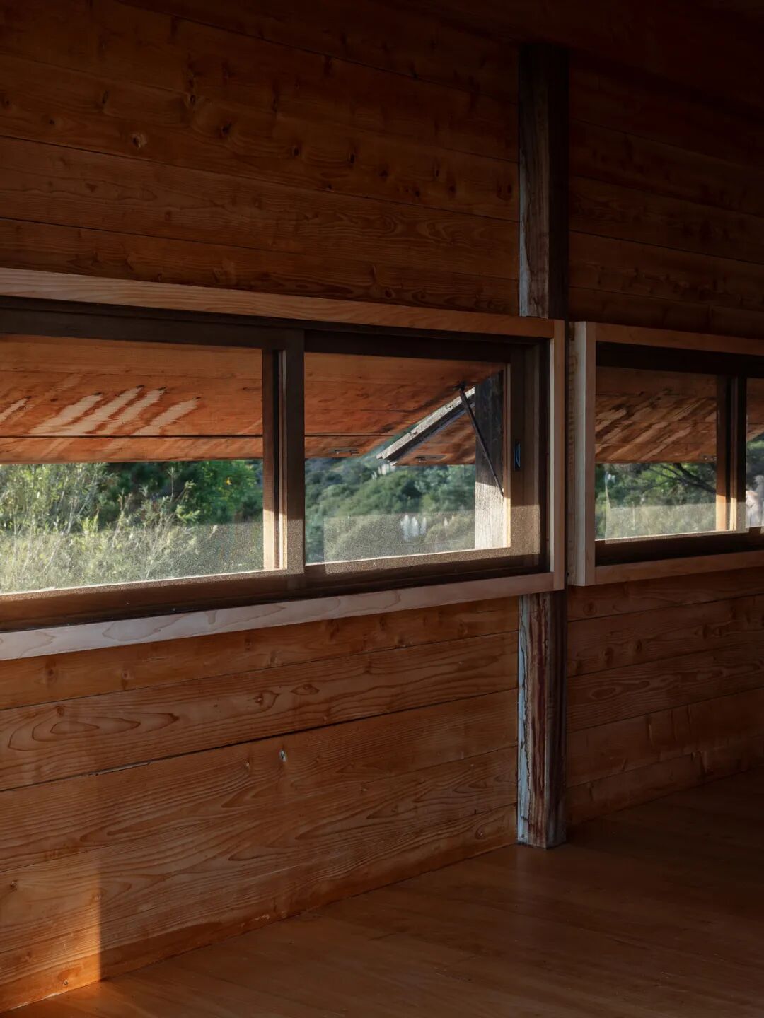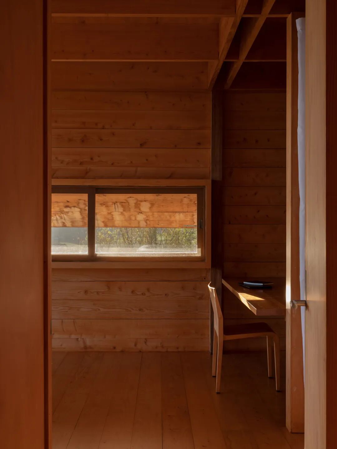 不同于建筑外立面采用的木材那样粗糙,室内的墙板和地板采用了柏树和南洋杉这两种木材,有着更为精致的材料表面处理。