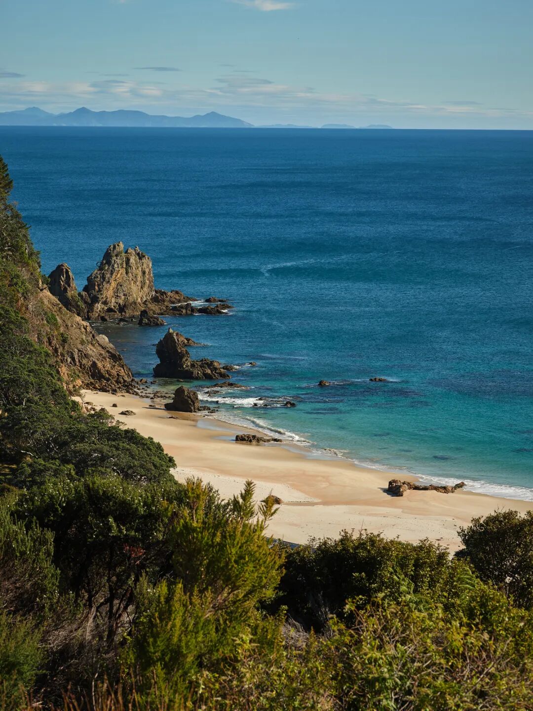 朝南是山景,朝北则是白色的沙滩与海边,可以看到一系列岛屿的壮丽景色。