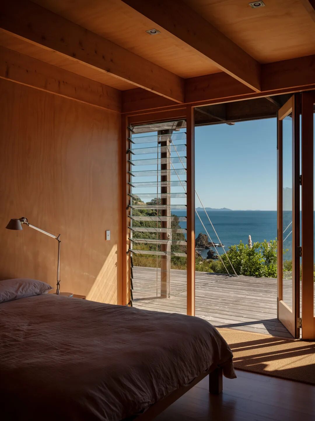 通过近乎完全开放的门口与露台,躺在卧室便能看到窗户外绝美的海岸景色。