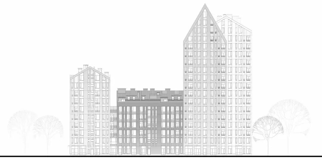 由于基辅曾经是一个工业区,设计师们很难思考如何将人们带到新住宅并吸引人们入住。“街区开发”概念的改编有助于将空间分为两种类型:允许机动车通行的街道和位于街区内,设有儿童游乐场、长椅和小巷的庭院,所以除紧急服务车辆外,机动车不得进入内院。