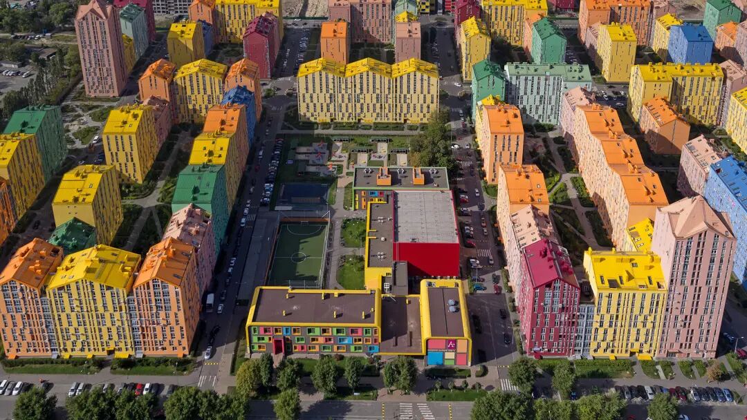 Archimatika建筑师:Dmytro Vasyliev、Aleksandr Popov 和 Olga Alfiorova, 在乌克兰基辅完成了一个名为“舒适小镇”的住宅项目,这个项目的独特之处在于它的色彩缤纷,整体像是一个巨大的乐高城市。