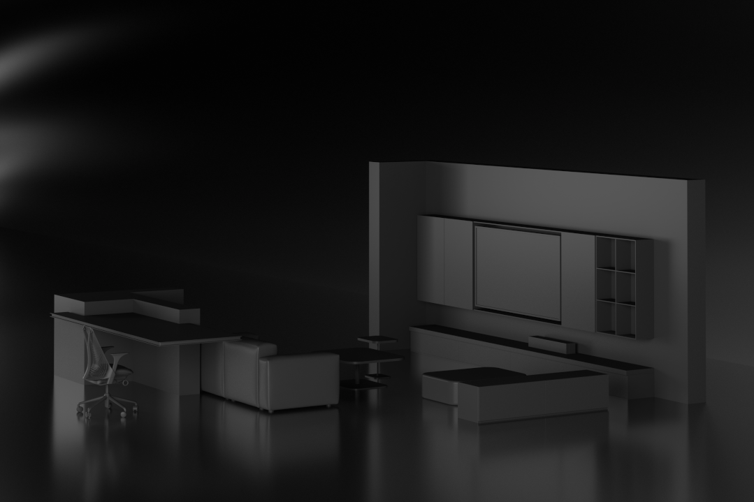 书桌与沙发形成不同的互动关系。