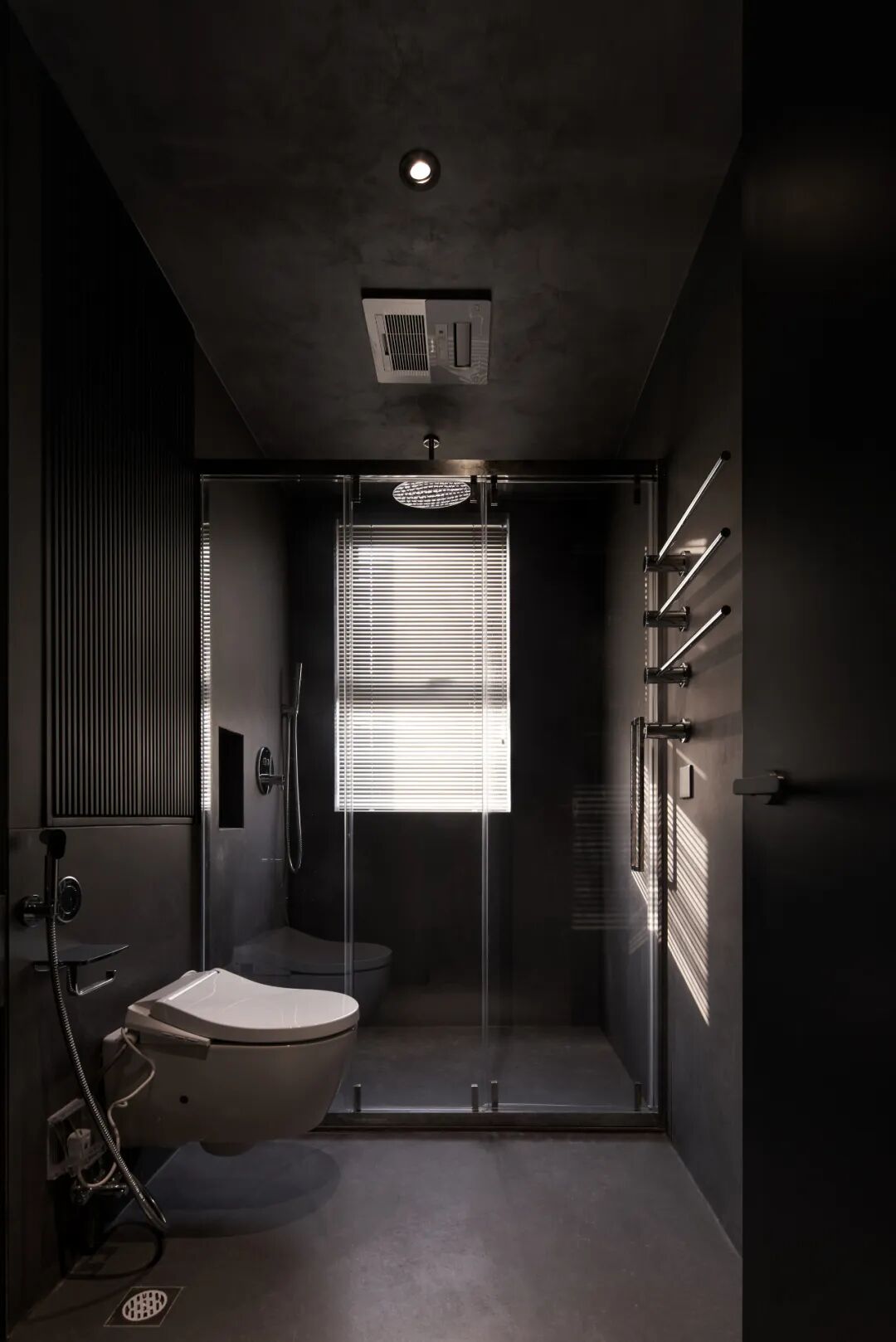 黑色柜体与灰玻组成了衣帽间区域。
