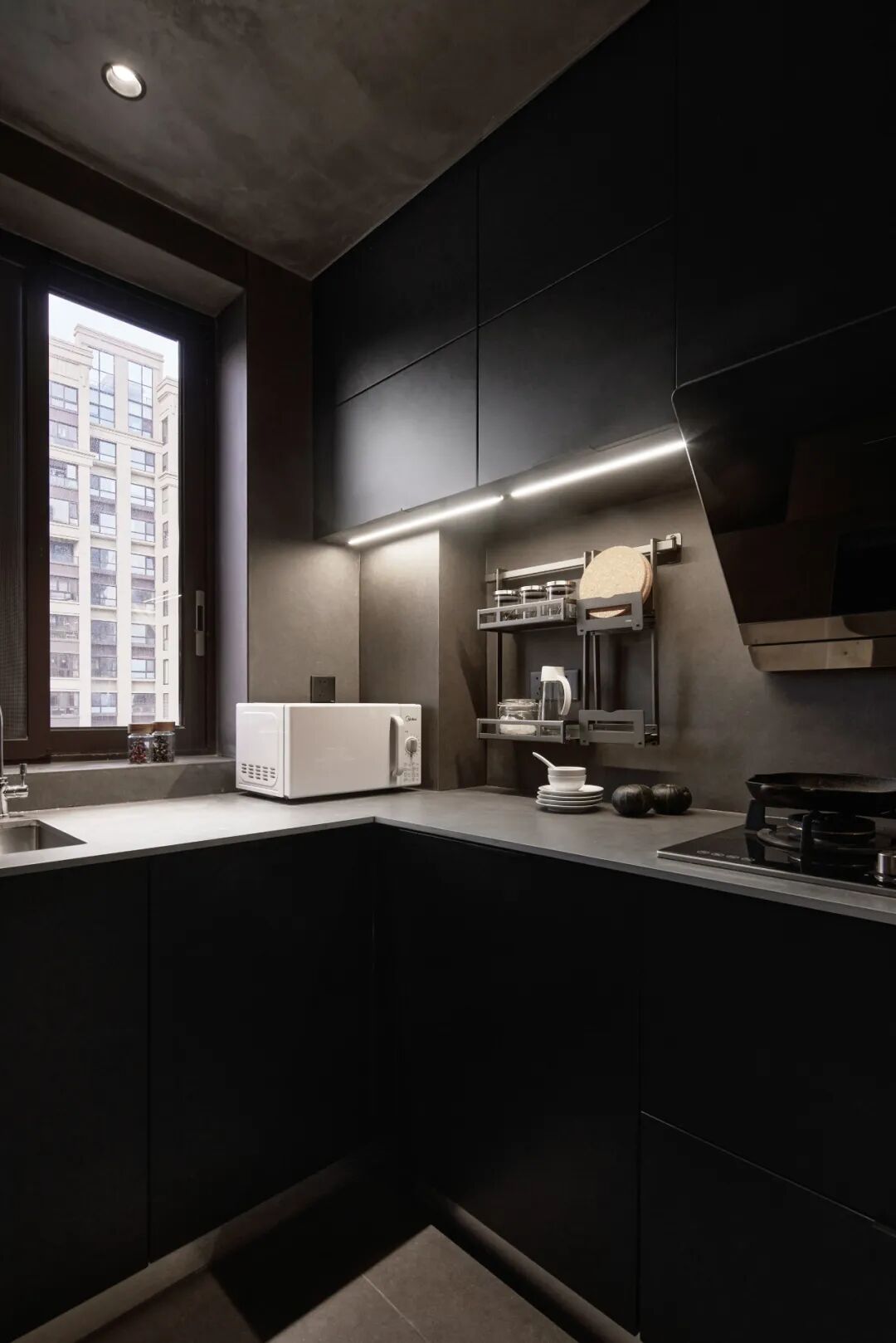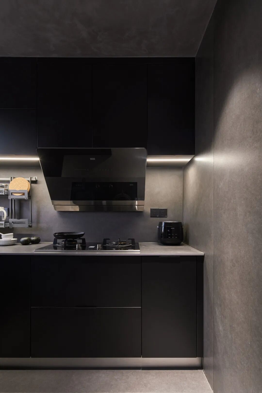 全岩板铺装的厨房,让接缝极限少。