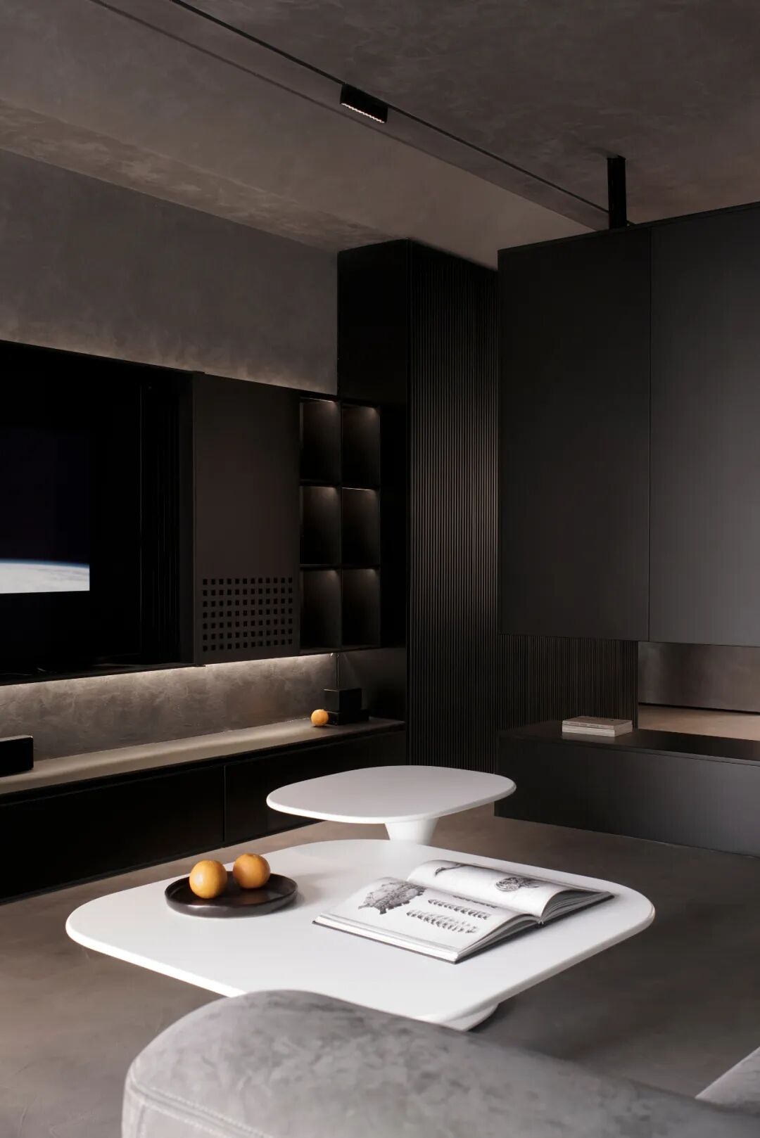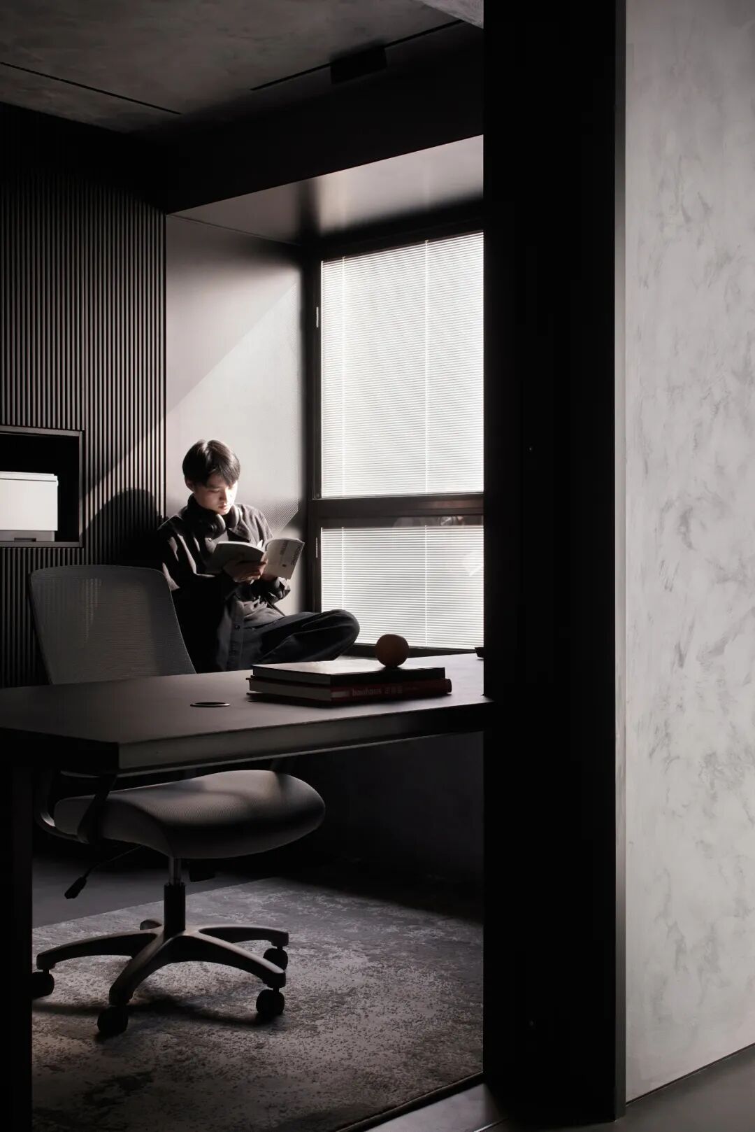 在充满神秘力量感的黑灰色调空间中留下寻光的印记,步入这个空间,就犹如褪尽繁华回归本真;进入属于自己的一方天地,被黑色所包裹,它接纳你的一切情绪。