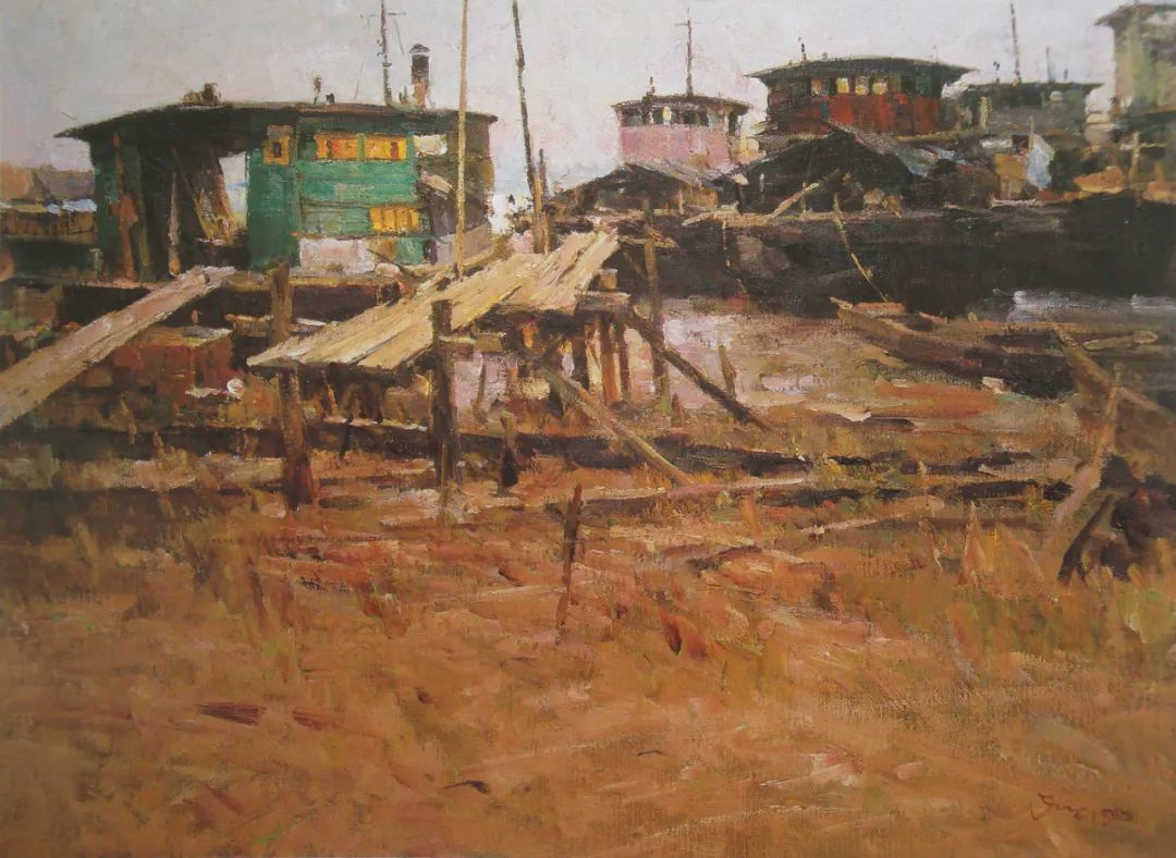 《西江码头》120x90cm 1993年作