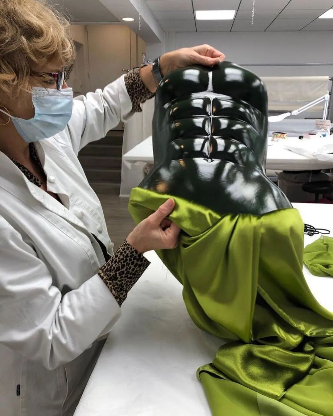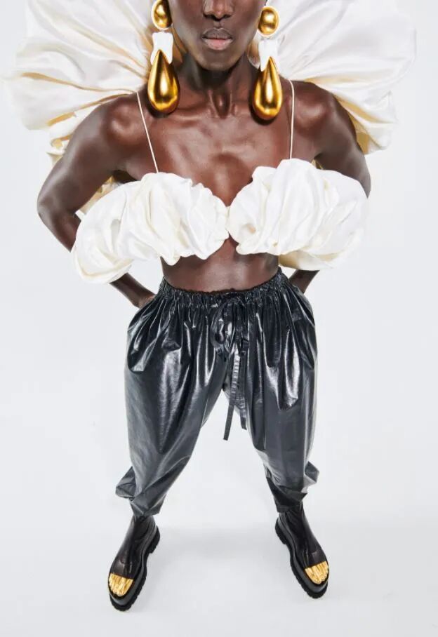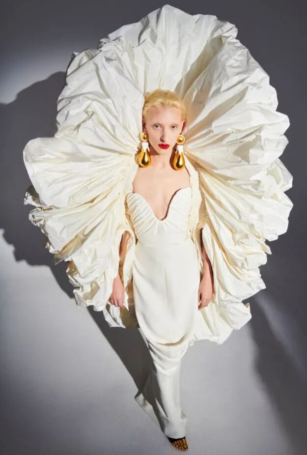 至于为何要用男性化象征的强壮肌肉来表现女性,Daniel Roseberry在Vogue的采访中提出,"我开始思考,高定时装是否其实有些厌女,要求或期望女人们看起来要超级女性化",而对于本季的设计理念,他则如是表达:"侧重点不在于变成男性,而是要成为强壮的女性。"