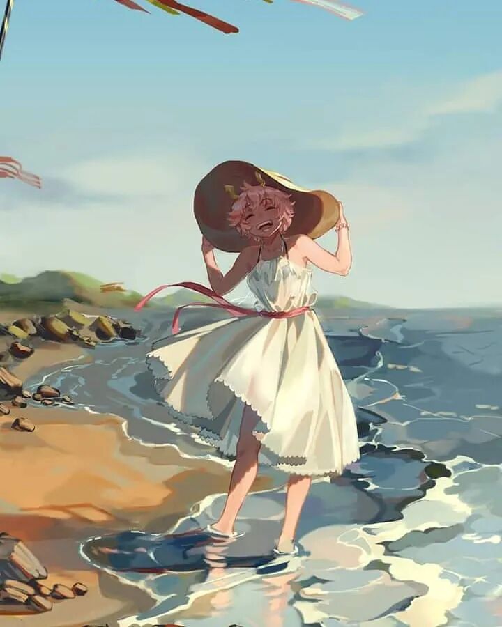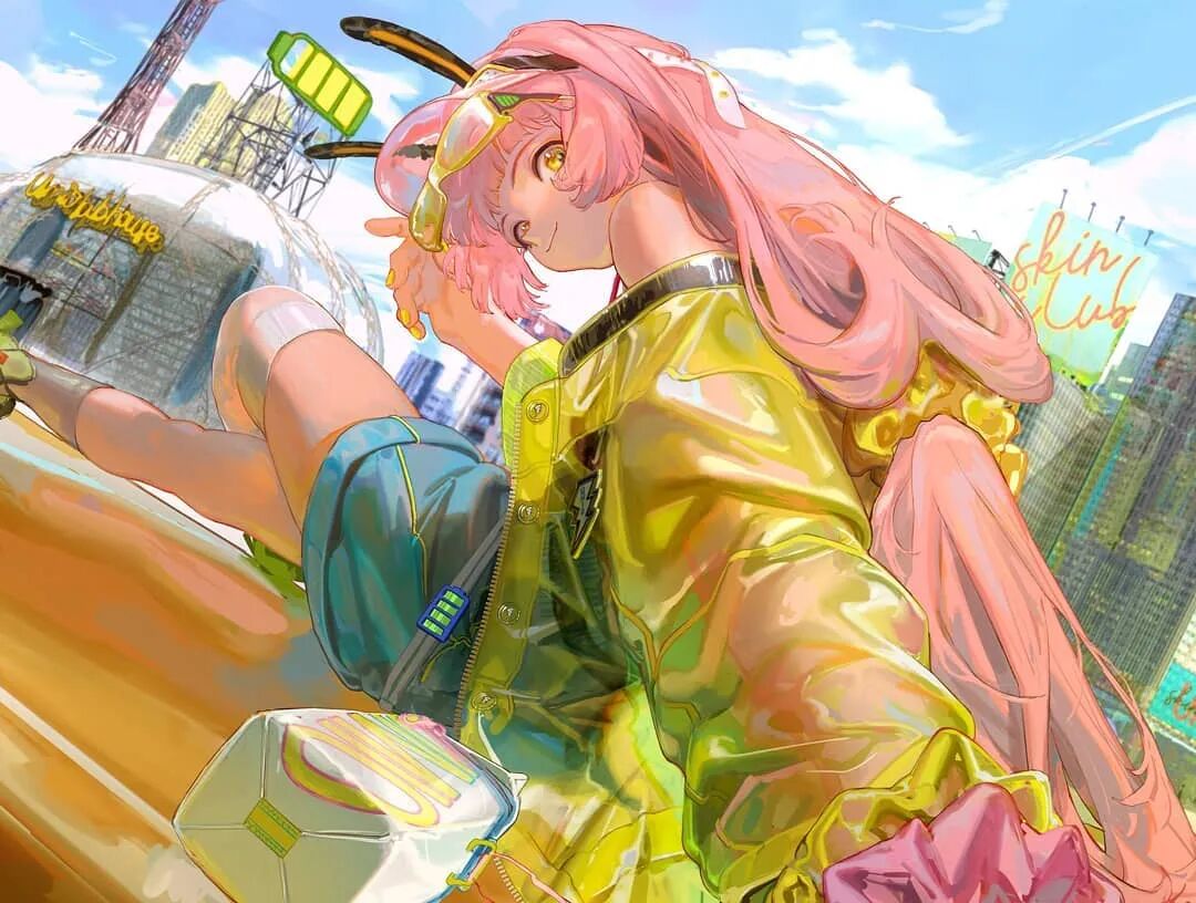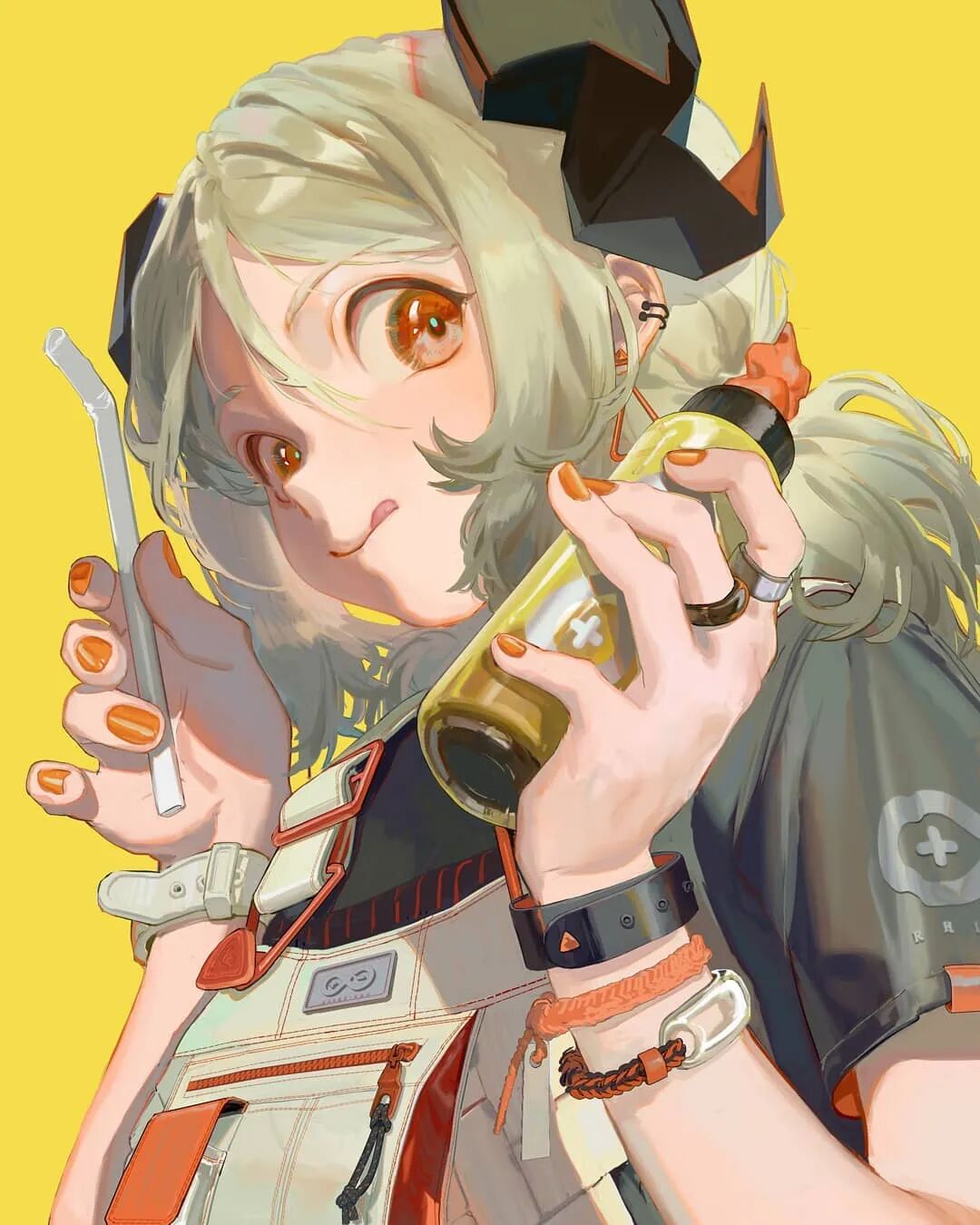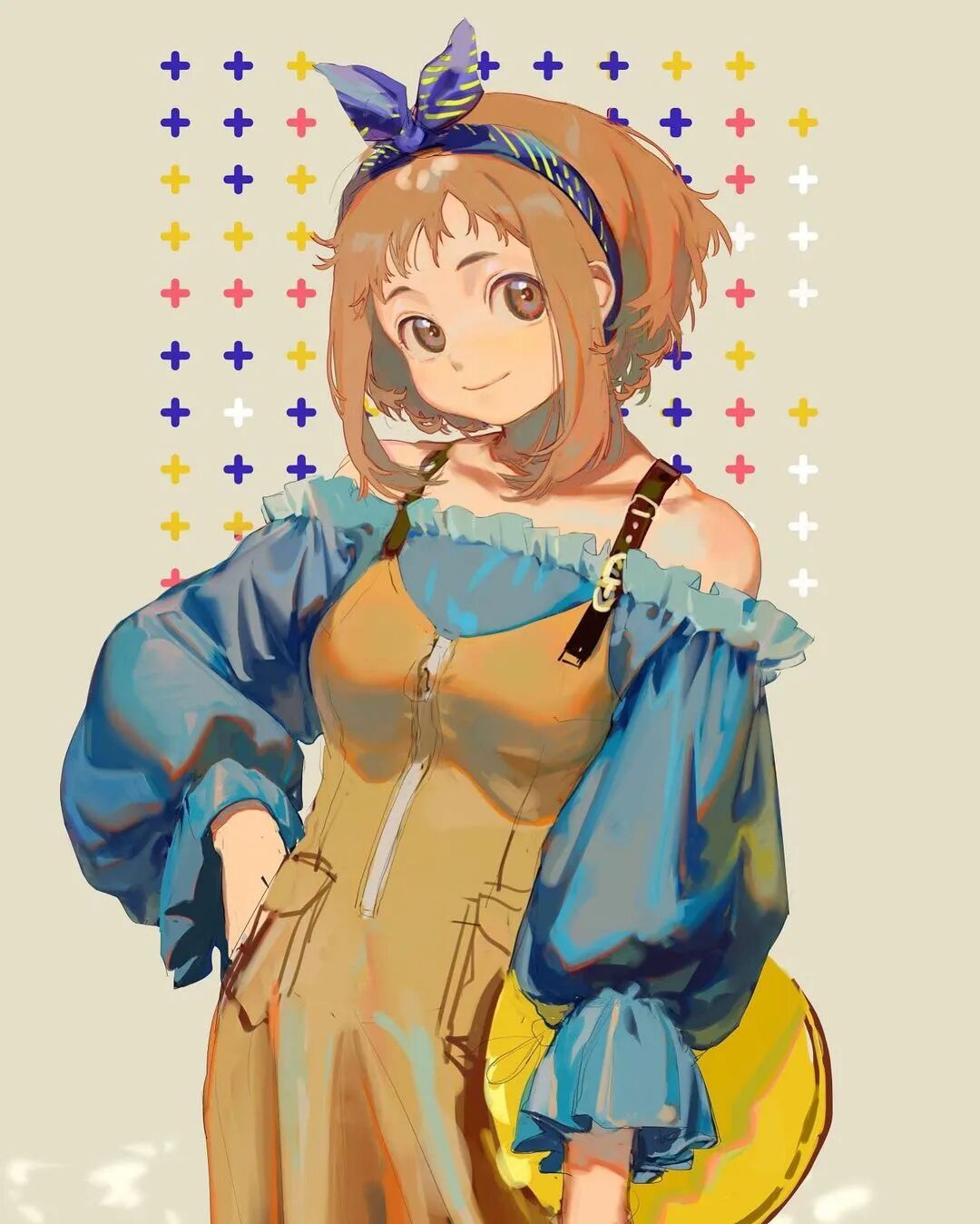 画师@_tamomoko笔下的小姐姐也太甜美活泼了吧,细腻的笔触将衣物材质处理的很是自然,画面配色清爽有活力!