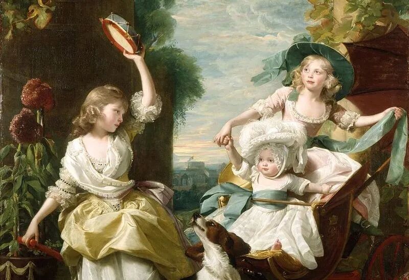 上:1785年,9岁的玛丽(左一)和两个妹妹一起玩耍 /