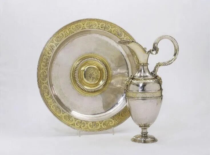 上:16世纪制作于西班牙的纯银镀金Oinochoe水壶套件,V&A藏 /