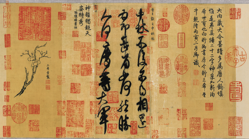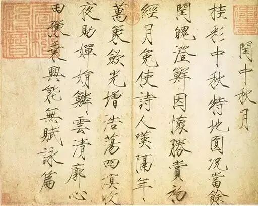 故宫博物院所藏 “瘦金体”《闰中秋月帖》,是宋徽宗赵佶在宋大观四年写下。凡七行,共六十字。帖文为七言律诗一首,乃中秋赏月即兴之作。