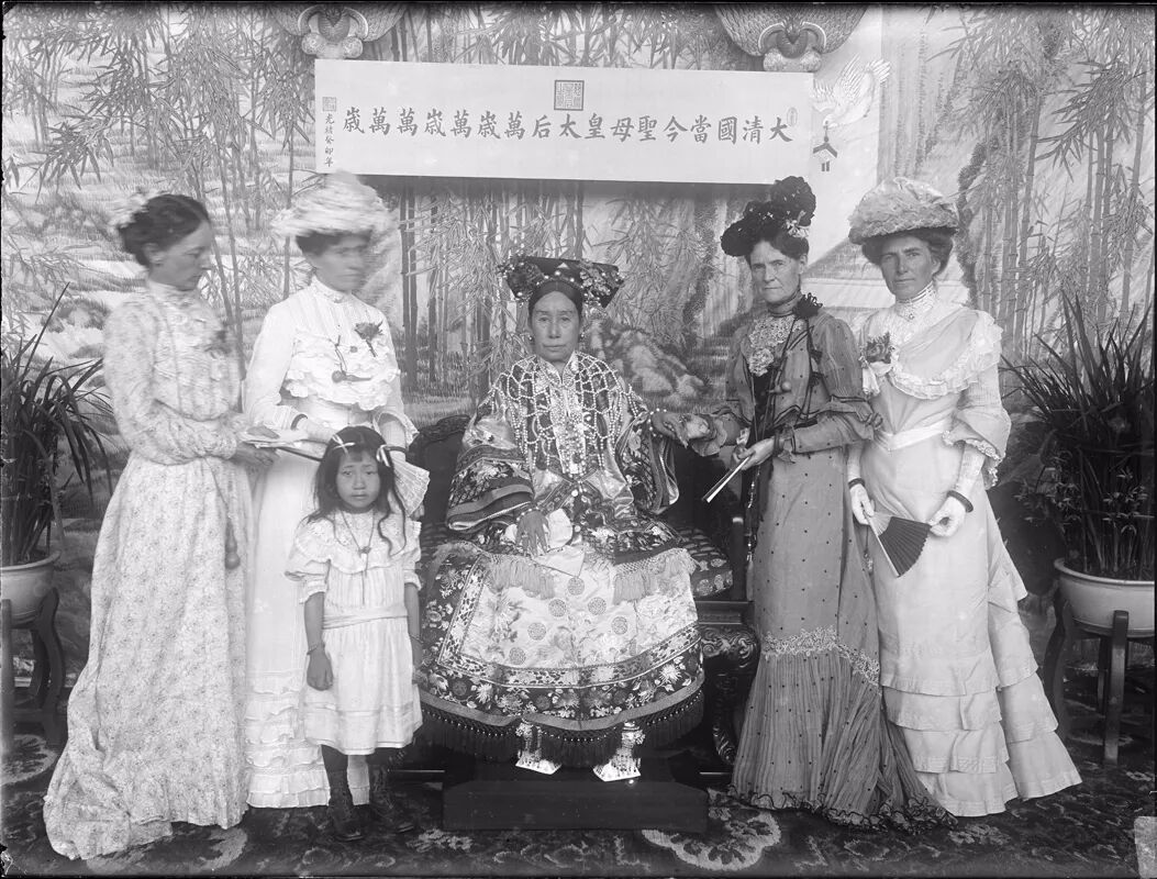 1903年 慈禧太后与庆亲王女儿等合影