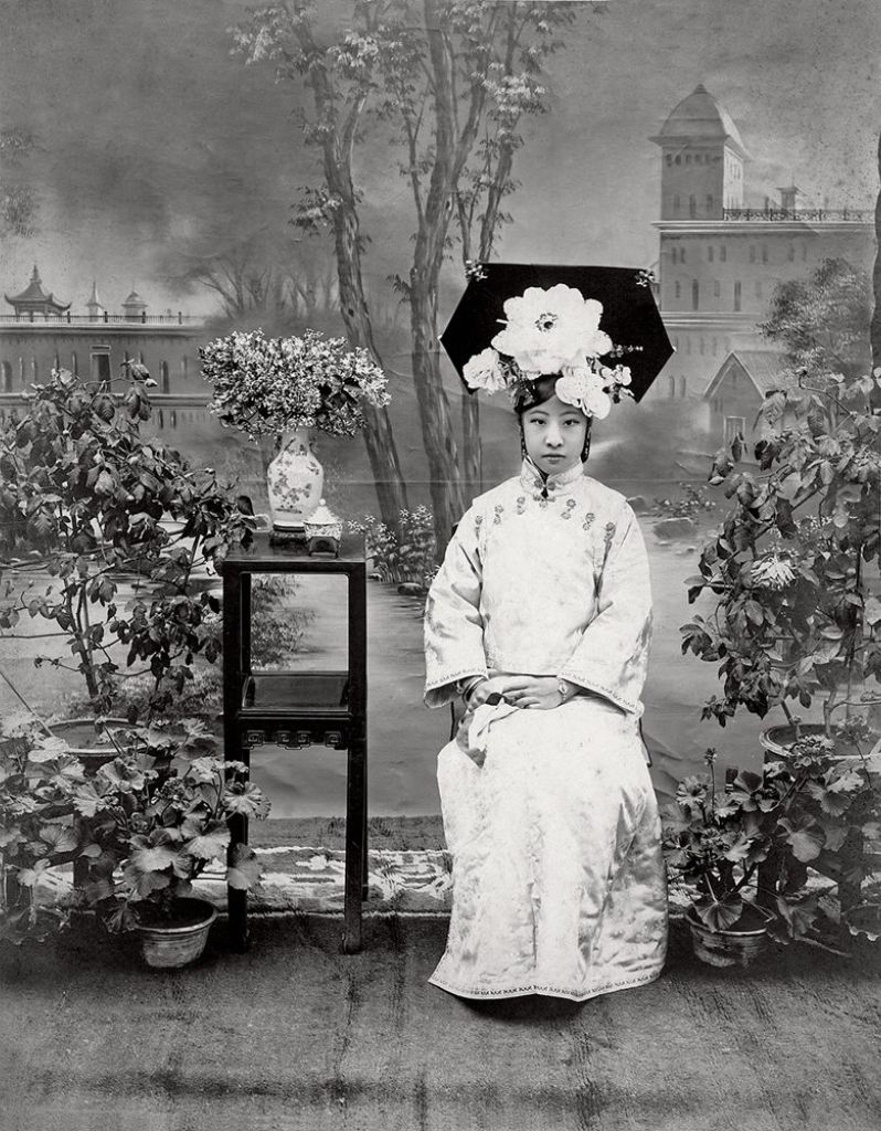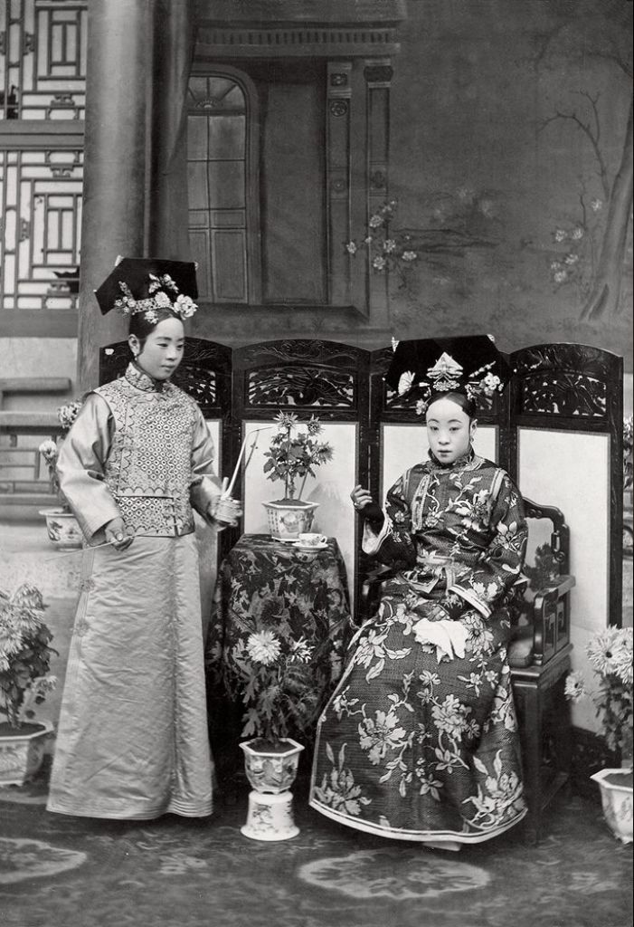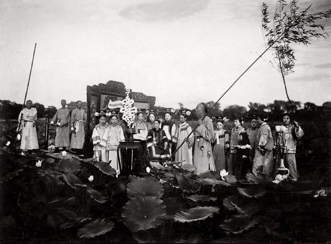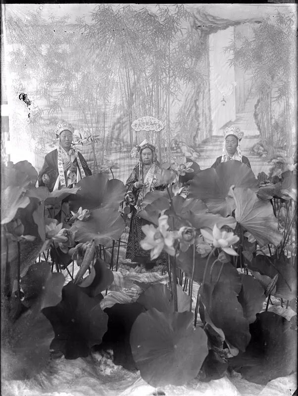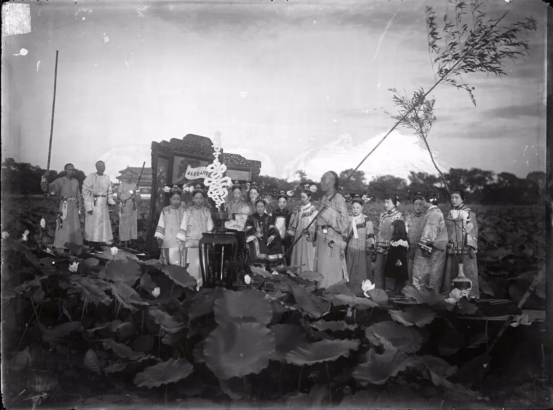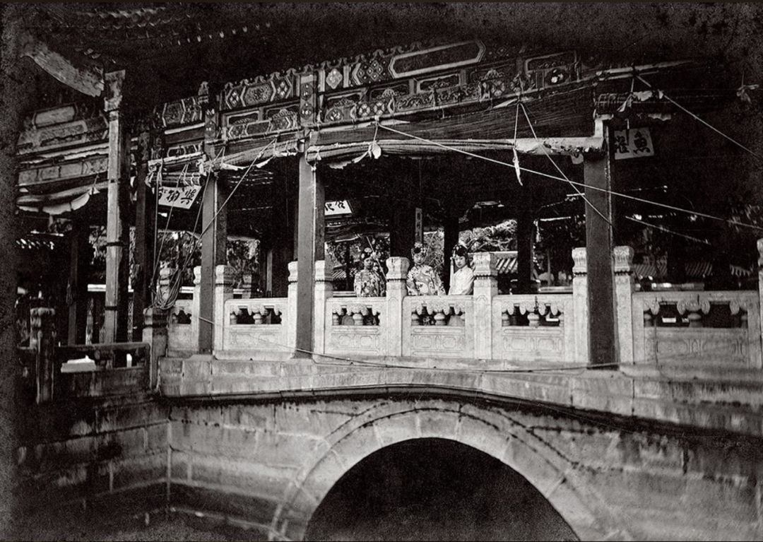 20世纪初 端康太妃与唐石霞观鱼留影 摄于延禧宫 中为端康,右为唐石霞。