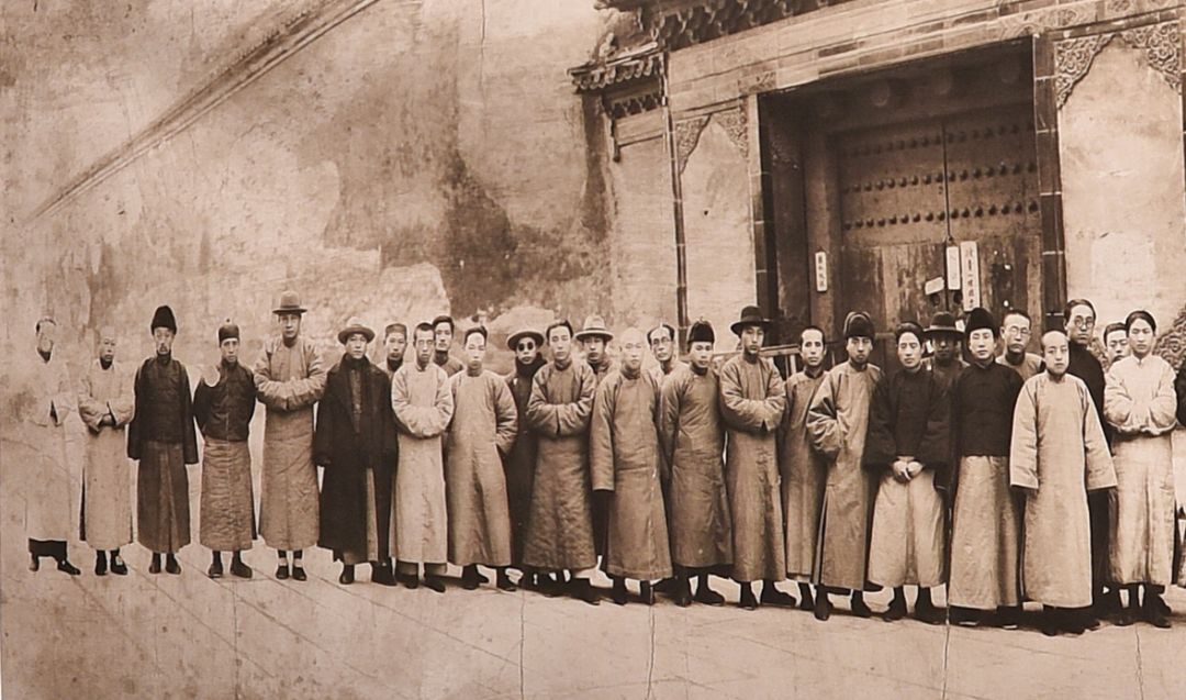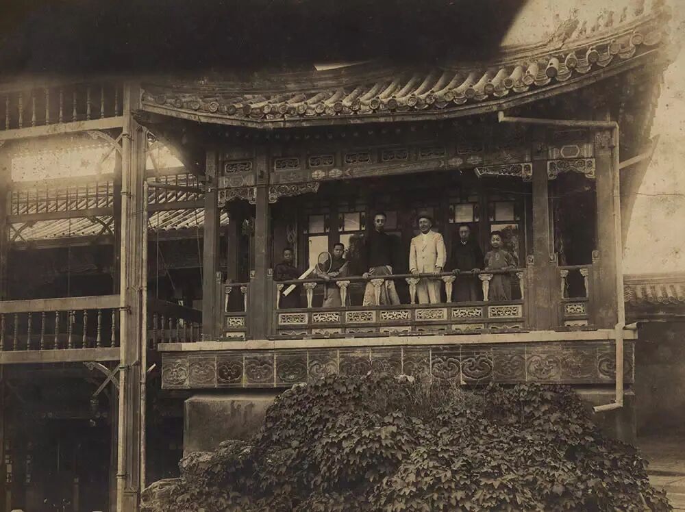 20世纪初 故宫博物院同仁在绛雪轩招待江庸等人留影 摄于绛雪轩 江庸(1878〜I960),字翊云,晚号澹翁,四川璧山(今重庆市璧山区)人,曾任故宫博物院古物馆馆长。