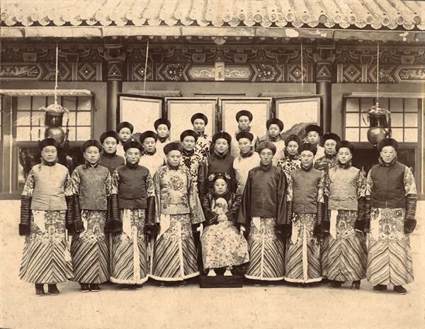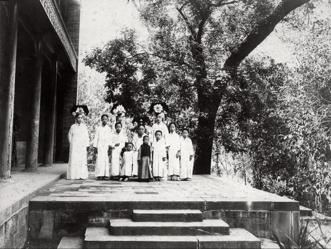 20世纪初 宫女与小太监合影