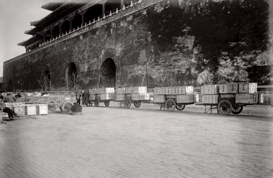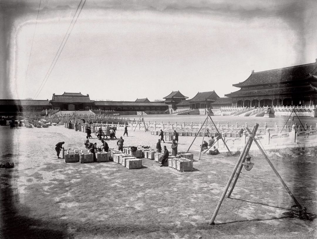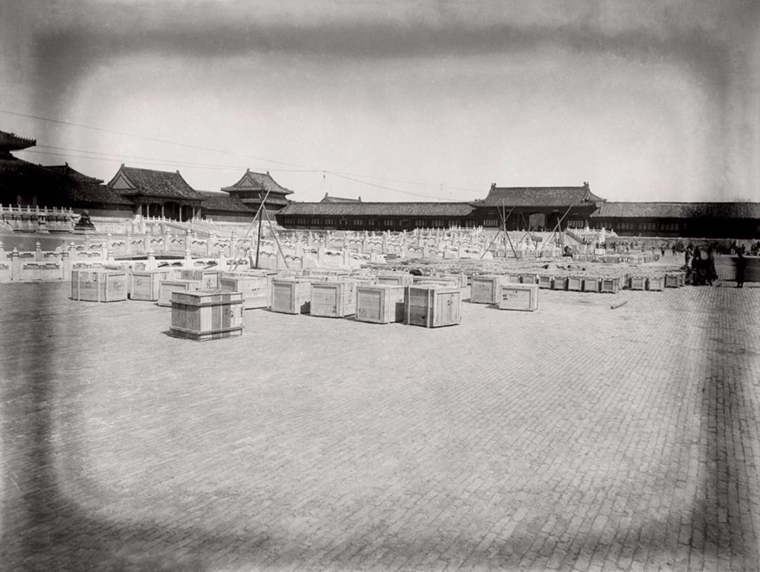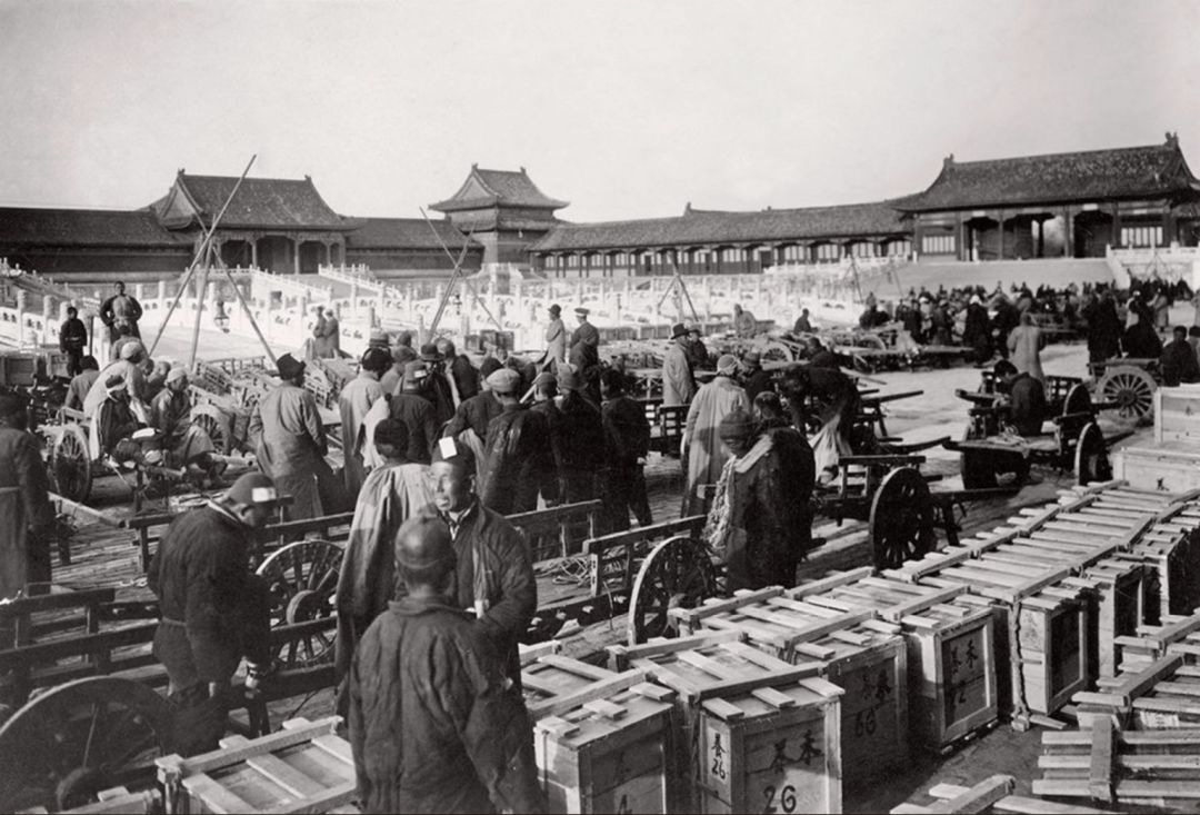 1933年2月 第一批古物南迁文物箱在太和门前广场集中